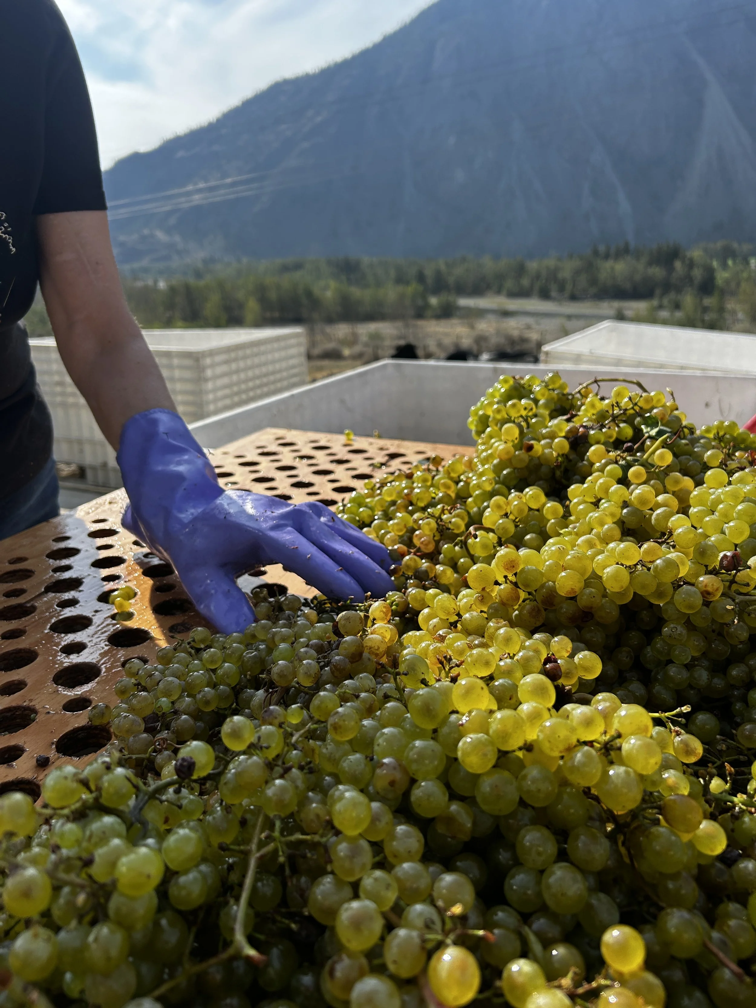 We use a water bladder press primarily which requires no electricity and is a gentle pressing process on the grapes. We also use a pneumatic press at other wineries when the lot is above 5 tons and we need more volume. This year, we will be using an anvil press as well.